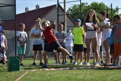Opět byly na programu 4 disciplíny, a to běh na 50 m, skok z místa, hod míčkem a závod na 200 m, tzv. Hegyesova tretra. I když bylo velmi teplé počasí, děti závodily s plným nasazením a nadšením. Na organizaci se také podíleli kolegové pí uč. Panošová, p. uč. Labák, Rozsnyó a Řehák, ten jako zdravotní dohled. Touto cestou jim moc děkuji a samozřejmě děkuji i deváťákům, kteří pomáhali u jednotlivých disciplín. Nakonec i oni se překvapivě vrhli do sportovního klání, a to na běh na 200 m. Děvčata dokonce běžela 400 m a kluci vyzvali p. uč. Labáka, ale i za mohutného skandování se jim ho nepodařilo porazit – musí ještě trénovat:-)