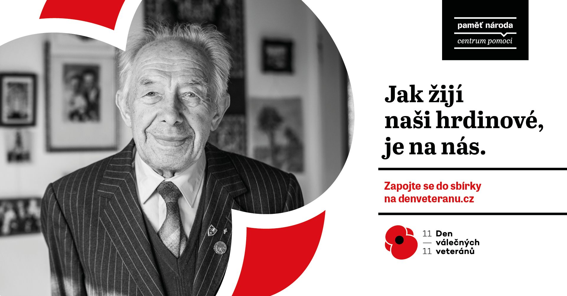 Bojovali za naši svobodu a dnes patří mezi ty nejzranitelnější z nás. Přispějte 11. listopadu u příležitosti Dne válečných veteránů na přímou pomoc pro válečné veterány a další bojovníky za svobodu, podpoříte také, aby se nezapomnělo na jejich příběhy. Připněte si květ vlčího máku jako symbol úcty k nim. Je na nás, jak žijí naši hrdinové.