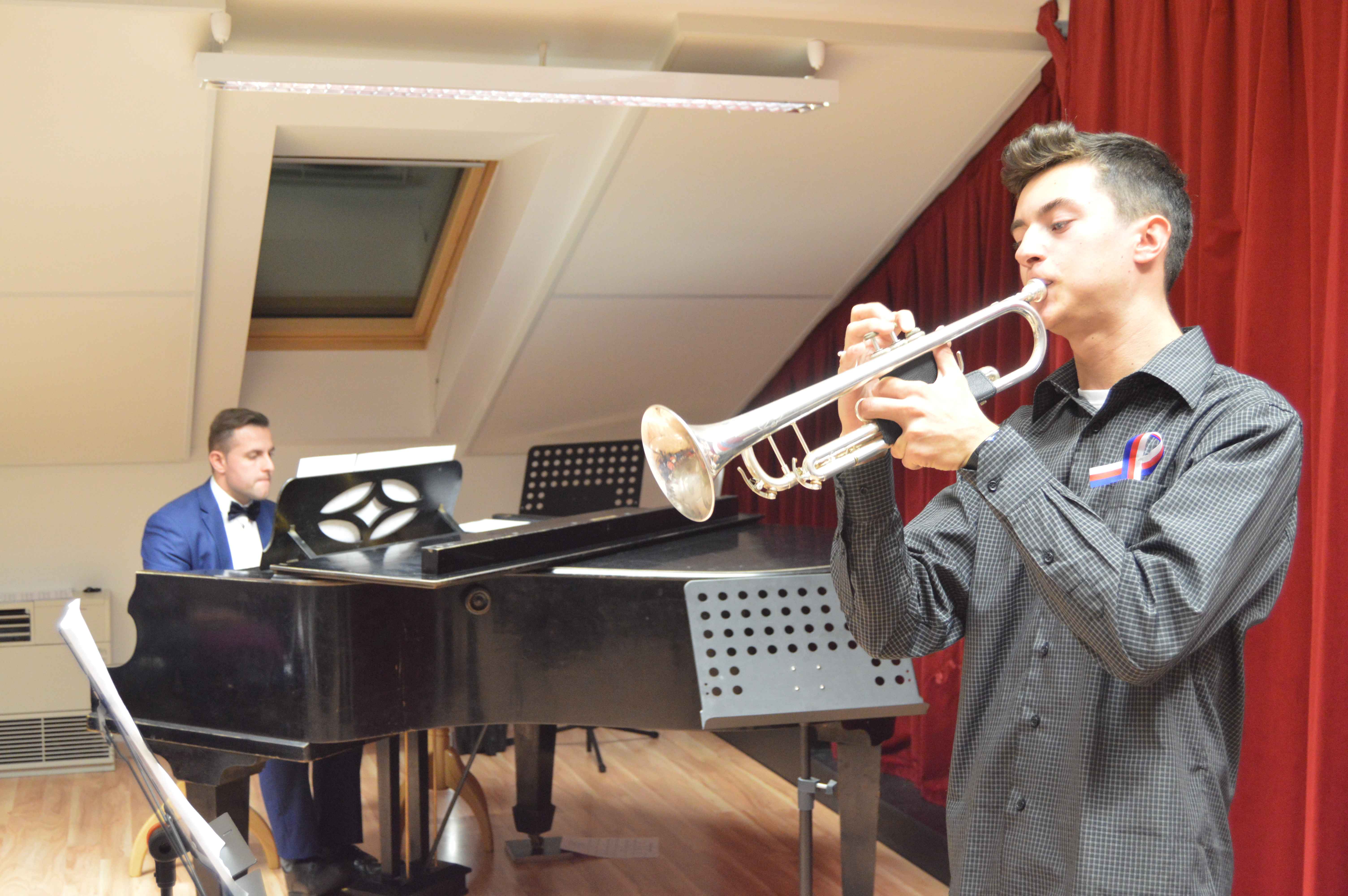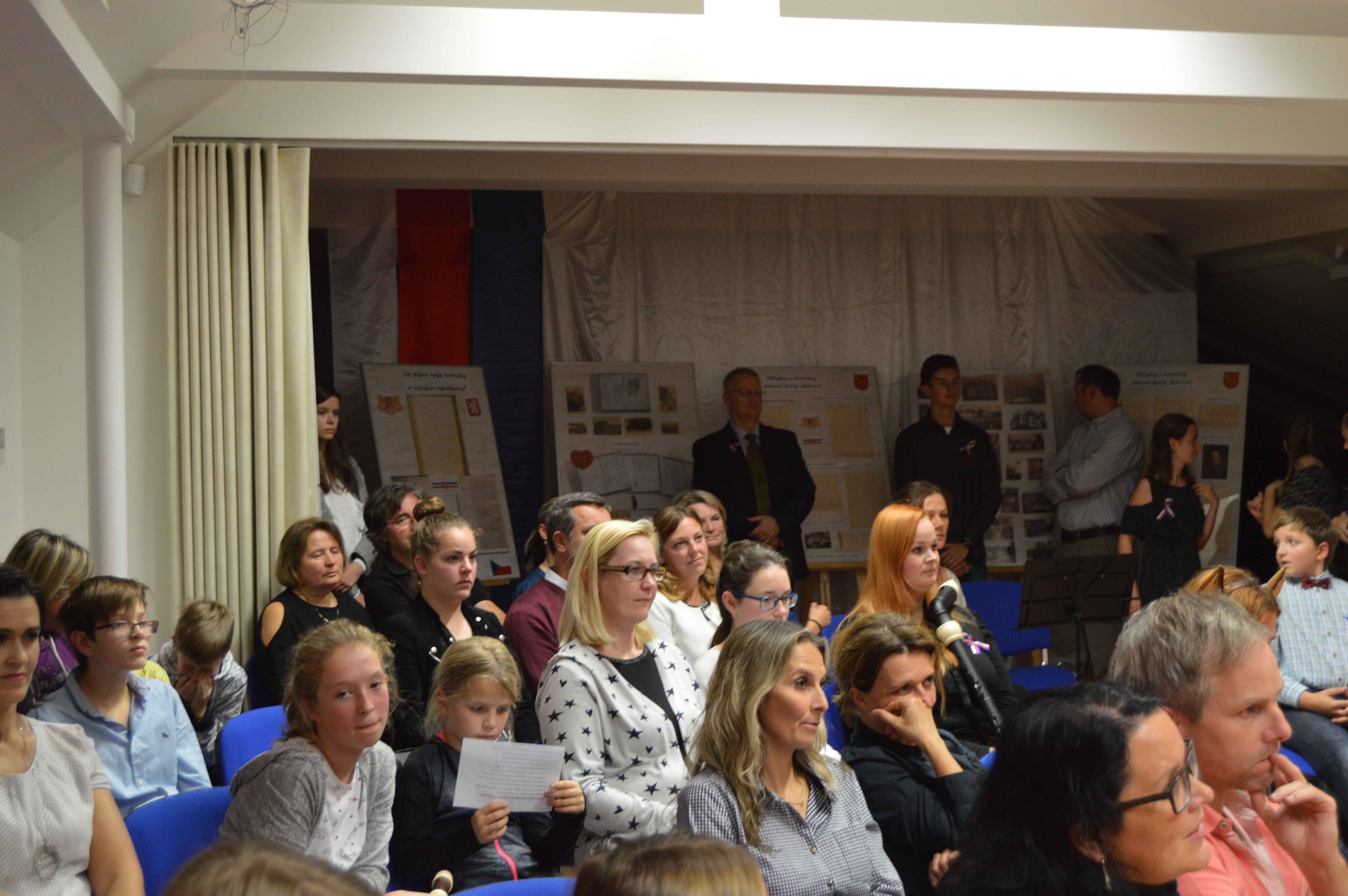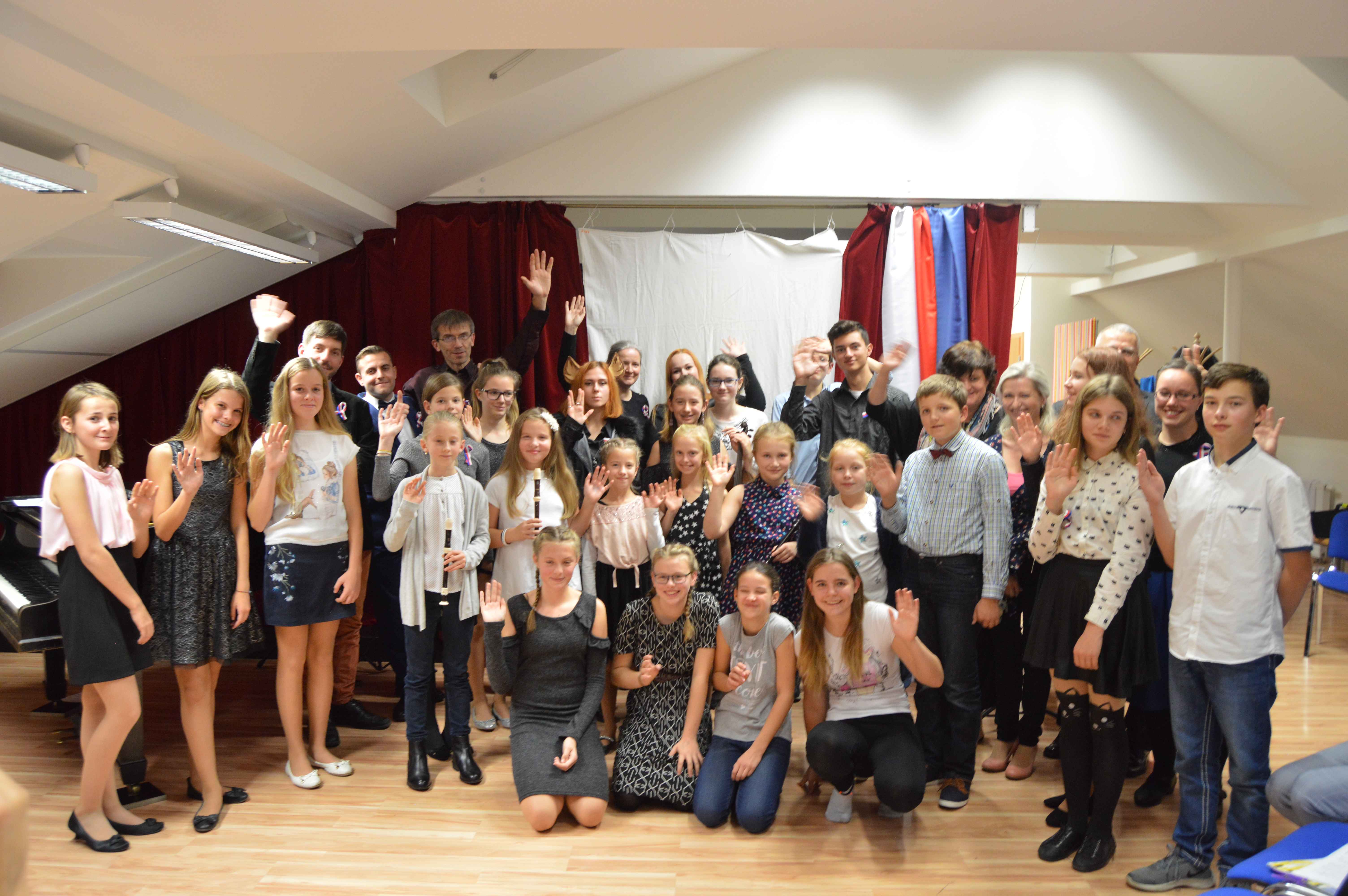 K oslavám stého výročí vzniku samostatného Československa připravili ve čtvrtek 25. října svůj program také žáci a učitelé jesenické ZUŠ. Byl složen téměř výhradně z písní a skladeb českých i slovenských autorů, s nimiž před tentokrát zcela zaplněný divadelní sál školy postupně předstupovali ti nejmenší s melodiemi z oblíbených Večerníčků, ti starší pak ať už jako sólisté nebo ve spolupráci se svými učiteli s písněmi či melodiemi od Jaroslava Ježka, Petra Ebena, Vítězslavy Kaprálové až po skladby z českých muzikálů a filmů. Hudební produkci pak uzavíralo neobvyklé zdramatizování Svatební košile K. J. Erbena, kterou žákyně literárně dramatického oboru spolu se svou učitelkou Štěpánkou Borskou nastudovaly jako stínové divadlo. Připravený program tematicky doplnila část výstavy k výročí 930 let „poštovní stanice“ v Jesenici, kterou nám zapůjčil městský úřad. Potěšitelné bylo kromě dobře vybraných i pečlivě připravených vystoupení (i přes krátký čas, který uplynul od začátku školního roku) to, že se v divadelním sále hlavní školní budovy v podvečerních hodinách sešlo početné publikum nejen z řad rodičů vystupujících dětí, ale své žáky si přišli poslechnout i jejich třídní učitelé ze základní školy i její další zaměstnanci, bývalí učitelé i představitelé města.