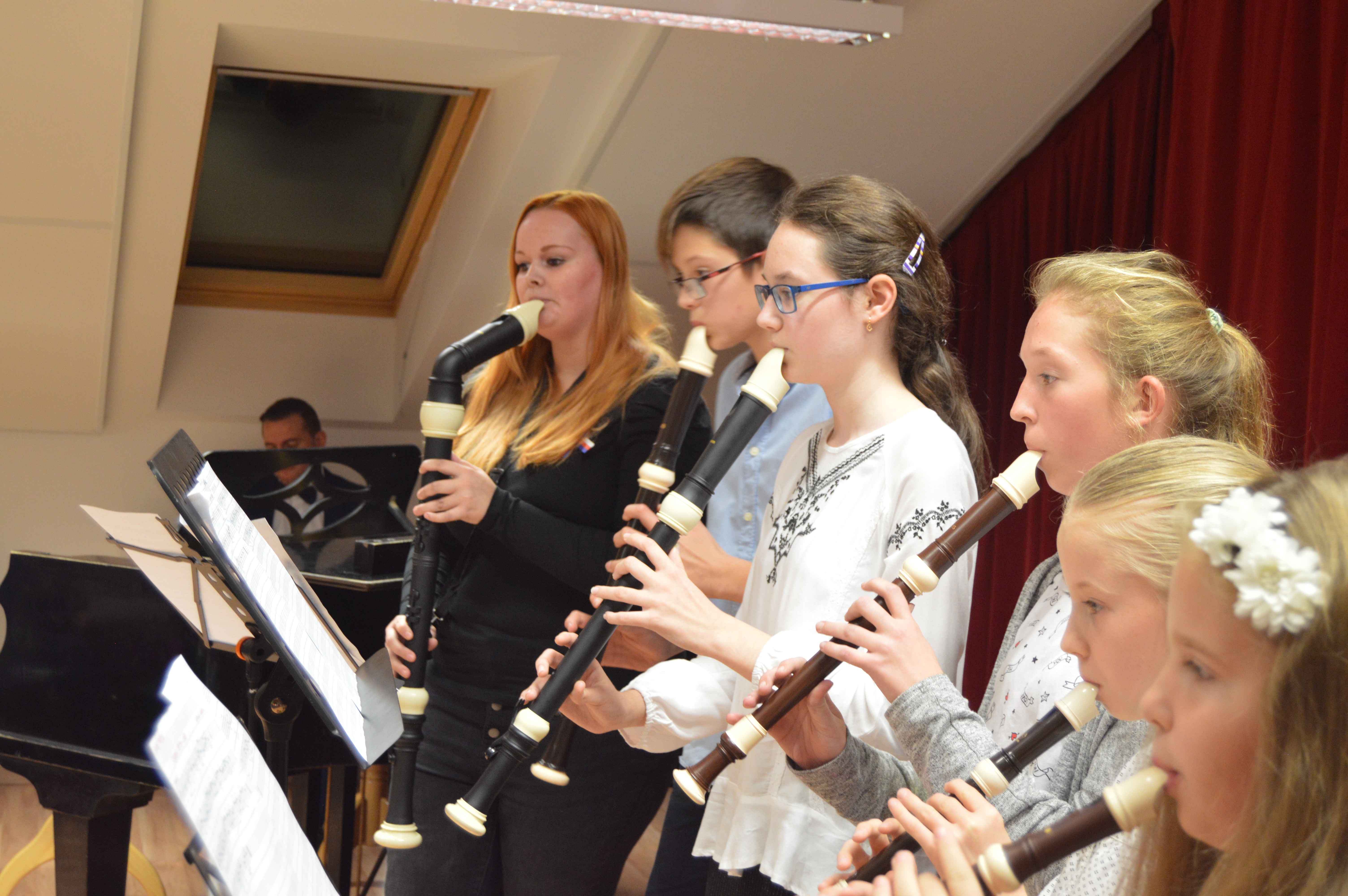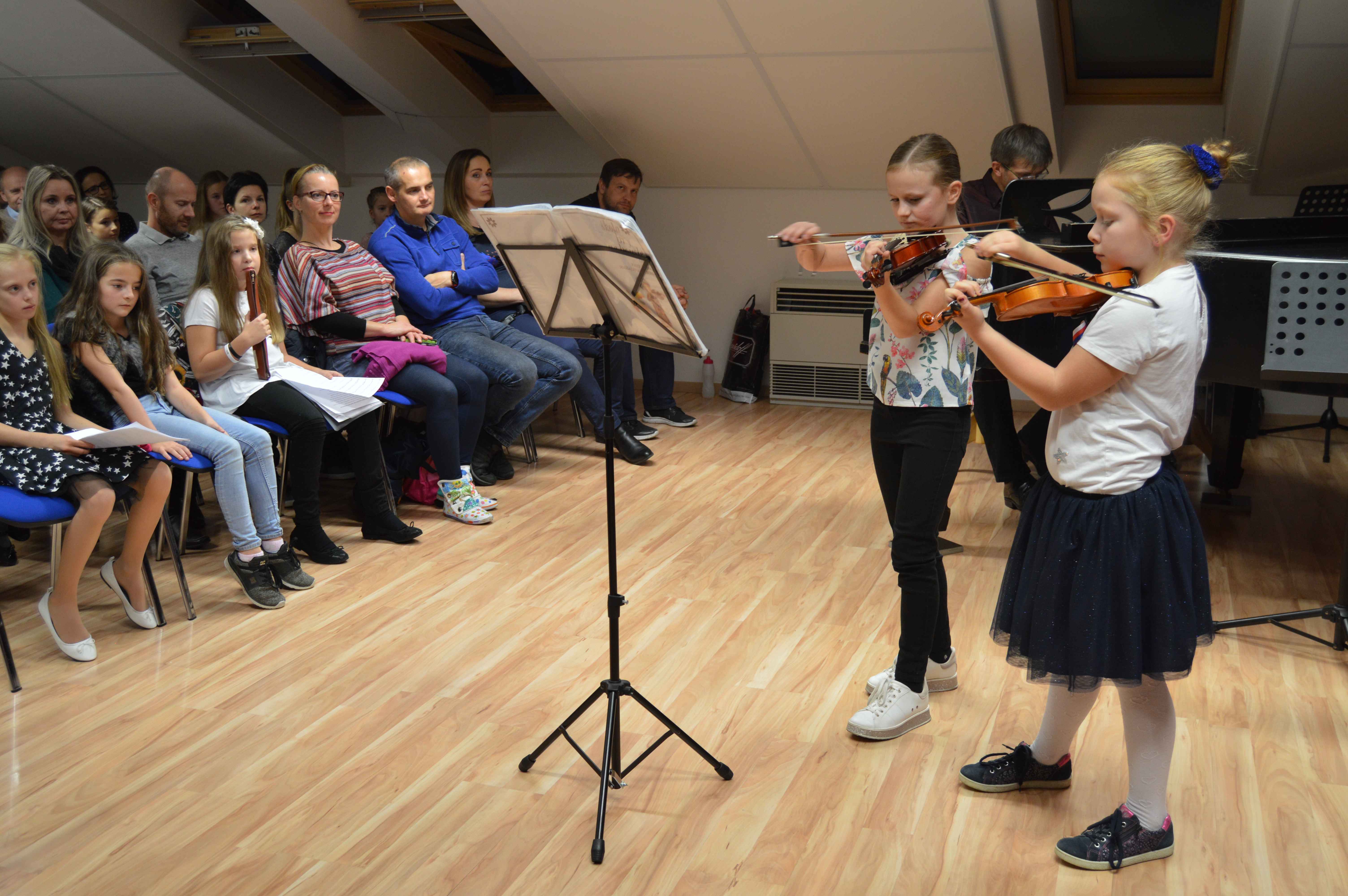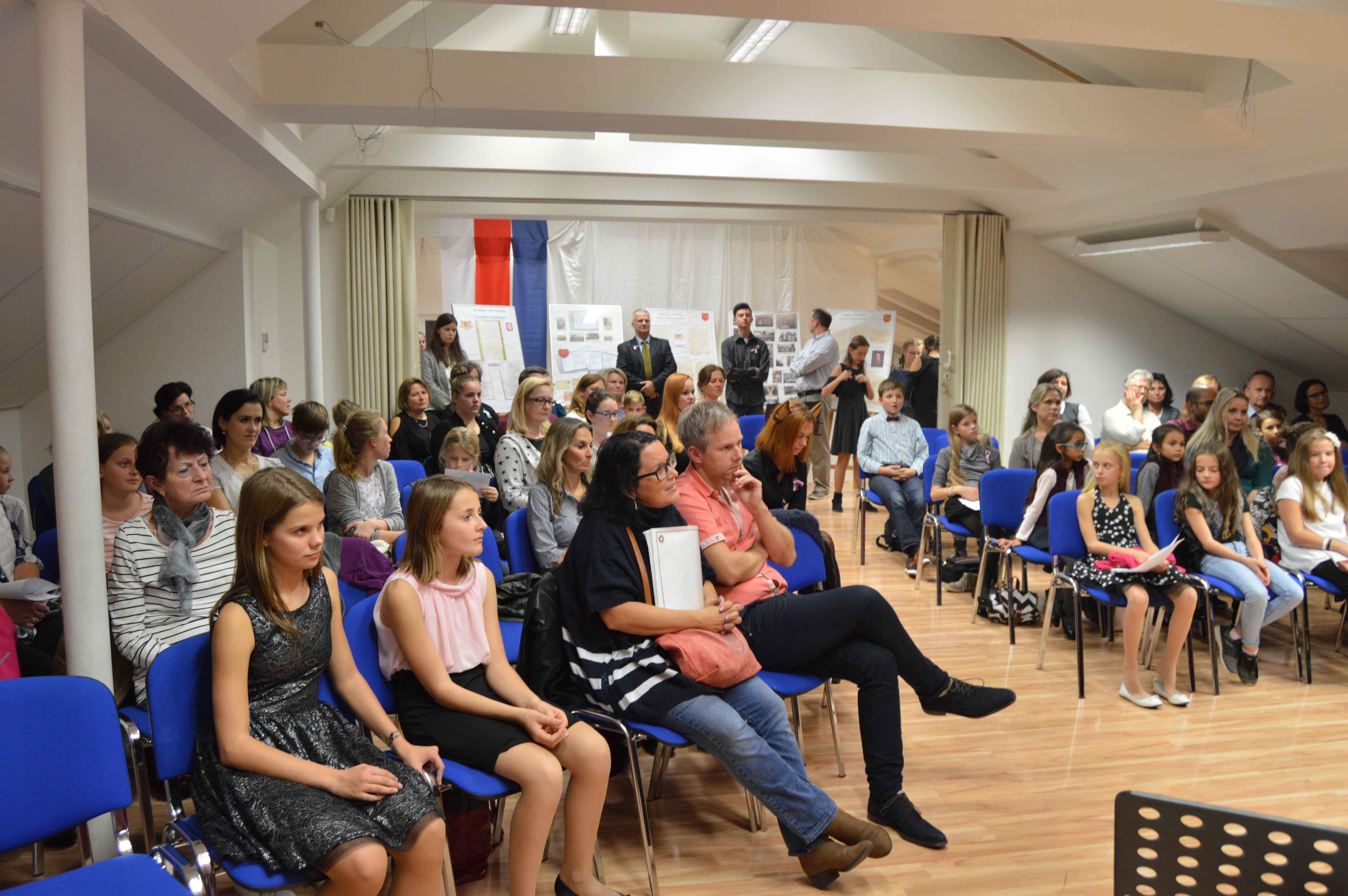 K oslavám stého výročí vzniku samostatného Československa připravili ve čtvrtek 25. října svůj program také žáci a učitelé jesenické ZUŠ. Byl složen téměř výhradně z písní a skladeb českých i slovenských autorů, s nimiž před tentokrát zcela zaplněný divadelní sál školy postupně předstupovali ti nejmenší s melodiemi z oblíbených Večerníčků, ti starší pak ať už jako sólisté nebo ve spolupráci se svými učiteli s písněmi či melodiemi od Jaroslava Ježka, Petra Ebena, Vítězslavy Kaprálové až po skladby z českých muzikálů a filmů. Hudební produkci pak uzavíralo neobvyklé zdramatizování Svatební košile K. J. Erbena, kterou žákyně literárně dramatického oboru spolu se svou učitelkou Štěpánkou Borskou nastudovaly jako stínové divadlo. Připravený program tematicky doplnila část výstavy k výročí 930 let „poštovní stanice“ v Jesenici, kterou nám zapůjčil městský úřad. Potěšitelné bylo kromě dobře vybraných i pečlivě připravených vystoupení (i přes krátký čas, který uplynul od začátku školního roku) to, že se v divadelním sále hlavní školní budovy v podvečerních hodinách sešlo početné publikum nejen z řad rodičů vystupujících dětí, ale své žáky si přišli poslechnout i jejich třídní učitelé ze základní školy i její další zaměstnanci, bývalí učitelé i představitelé města.