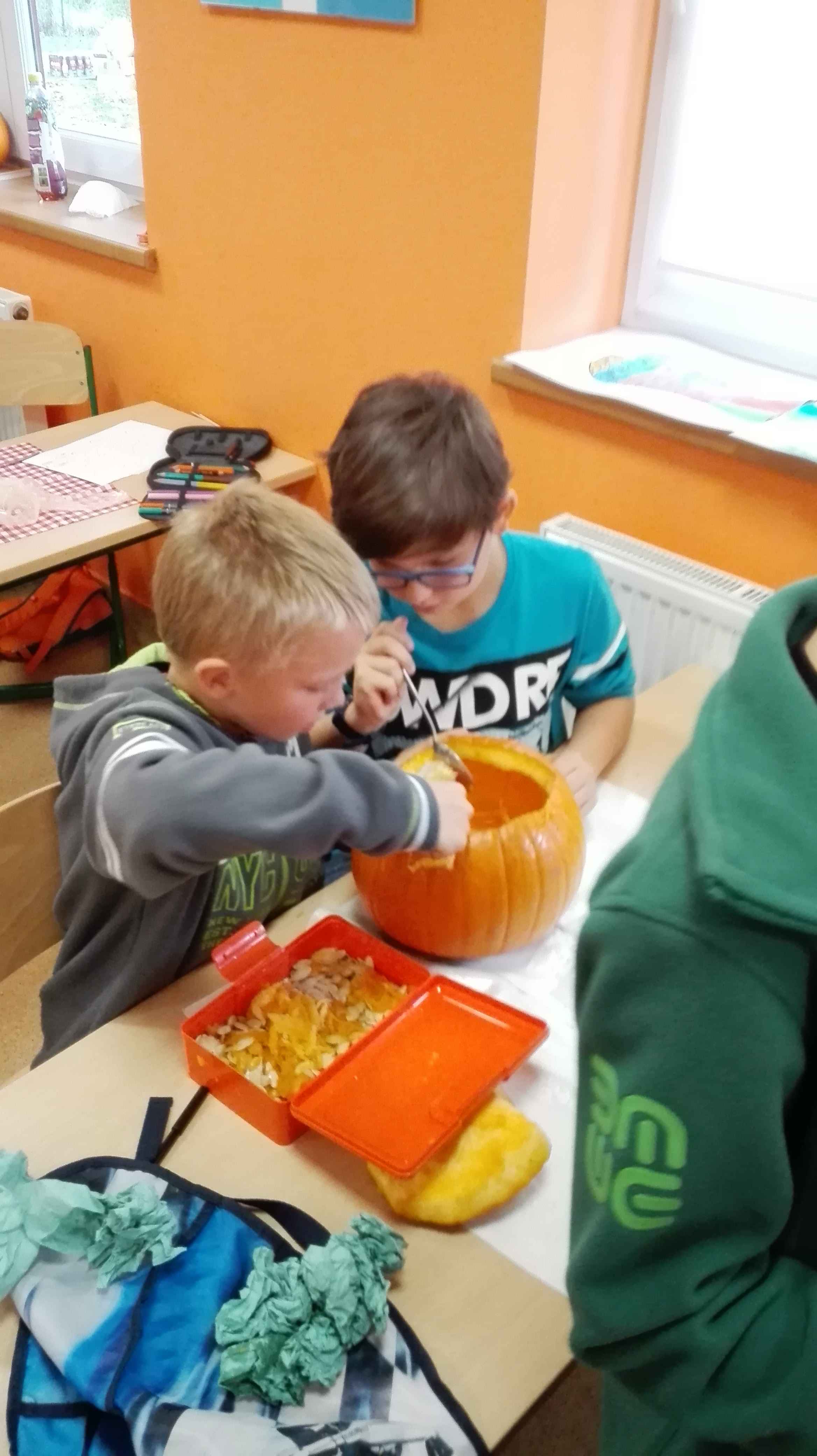 V úterý 10.října se v naší škole konal 1.oborový den tohoto školního roku.Třída 4.A se rozhodla pro projekt Halloween. Děti si přinesly dýně a pustily se do tvořivé činnosti. Většině se velmi dařilo a toto jsou výsledky jejich zručnosti a fantazie.
