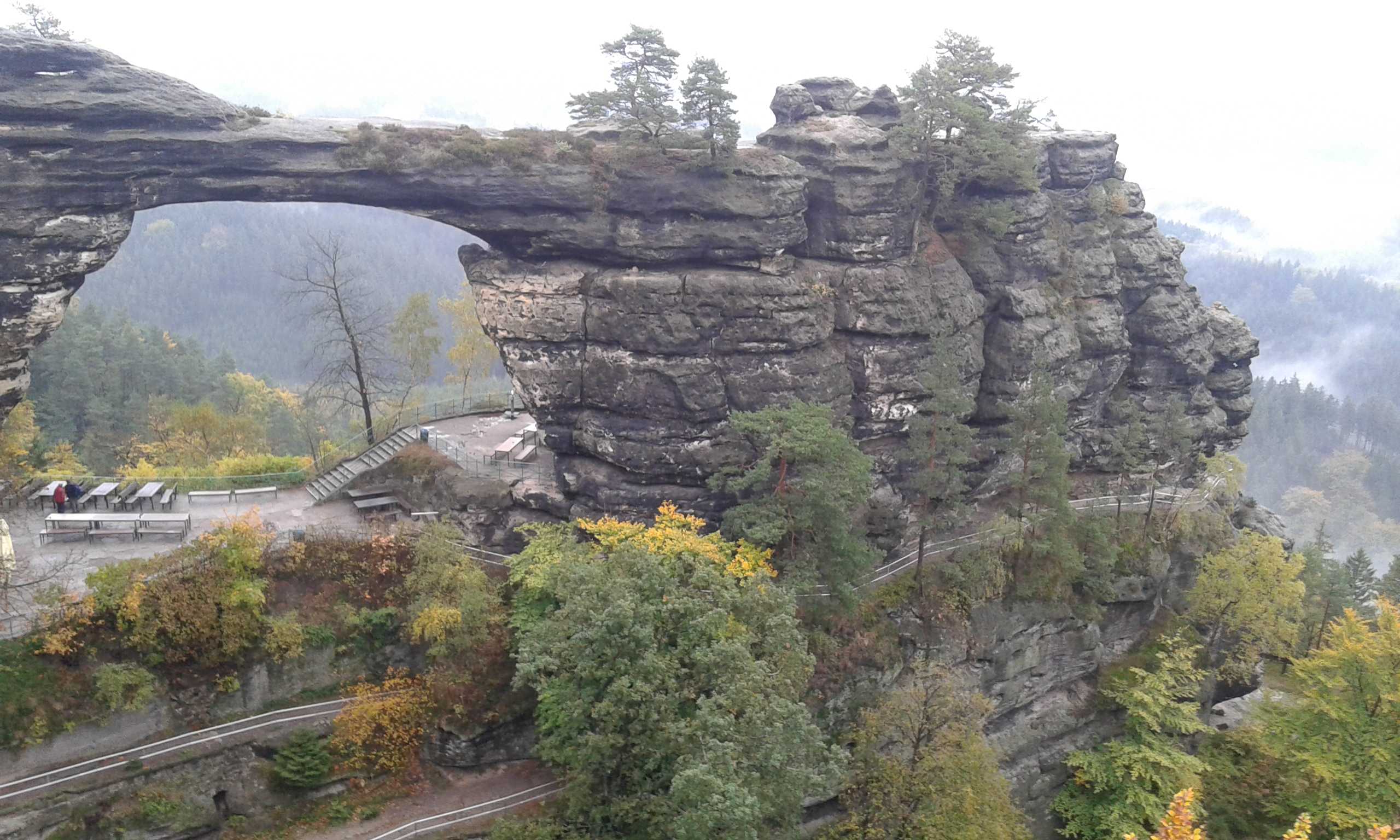 V tento den jsme navštívili Pravčickou bránu nacházející se až za Děčínem, poblíž německých hranic. Pro cestu k bráně jsme si zvolili delší cestu, která neměla být tak náročná a měla vést po horizontu, ale přesto si někteří z nás horizont představují jinak. Cesta byla dobrodružná, jelikož jsme museli zdolávat nejednu kalužinu, zablácený terén či kameny s pískem, ale o to jsme si cestu více užili, i když z nás doma asi radost neměli. Odměnou za tento terén pro nás byla Pravčická brána, která se nám na konci naší cesty zjevila. Zakoupili jsme si vstupenky, posilnili se a vydali se prozkoumávat jednotlivé vyhlídky.