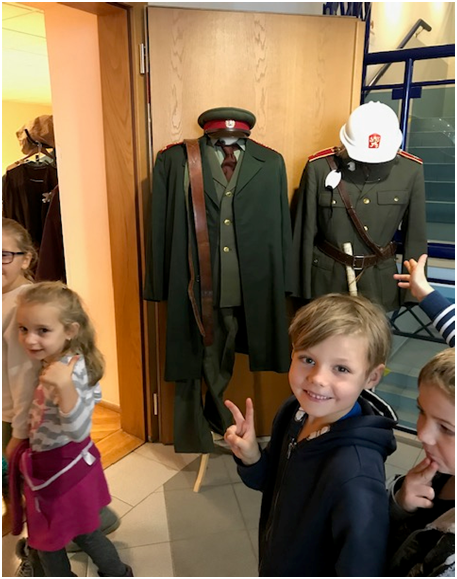 Hravou formou se děti také seznámily s dobou před revolucí. Při té příležitosti jsme navštívili Retro výstavu s výstavou dětských výtvarných prací na Městském úřadě Jesenice a následně jsme si ve třídě ukazovali některé dobové předměty – Mončičáky, digi hry, céčka…